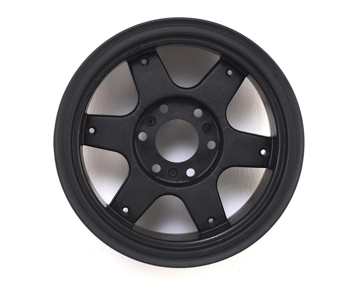 The wheels include pre-cut polycarbonate discs which attach with 6 x 2 x 4mm screws and can be painted to match any scheme or mud runner. The wheel discs add a scale look and utilize a clever design not seen in this segment of RC. Also included is a pair of steel, serrated, 4mm thin pattern lock-nuts for greater security. The Dragon wheels are available in black and feature a slight matte finish but with the addition of the polycarbonate disc, can easily be detailed to be outrageous.