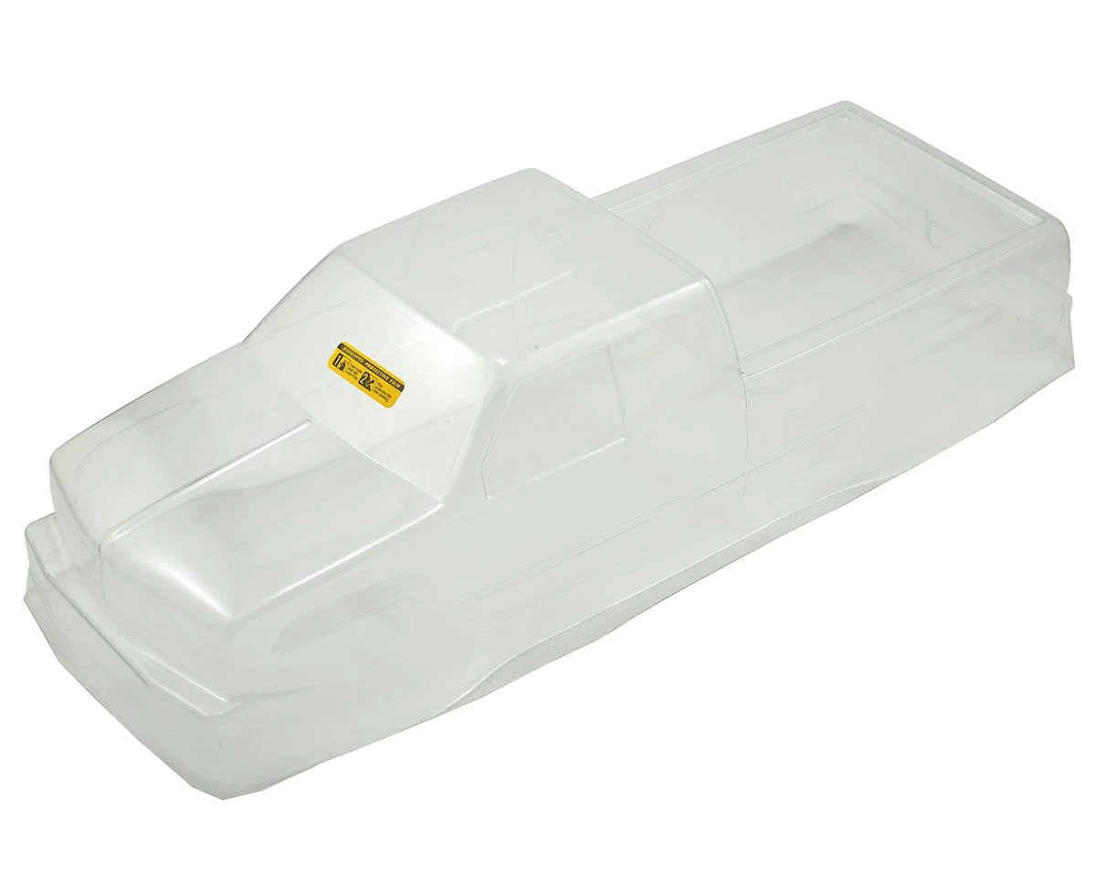 The JConcepts body includes a decal sheet that makes detailing out the headlights, taillights and grille a breeze while window mask allows the user to quickly get the body into paint. The extended cab body has an 13” wheelbase and fits retro and race monster trucks as a drop-on giving the all important clearance and functionality.