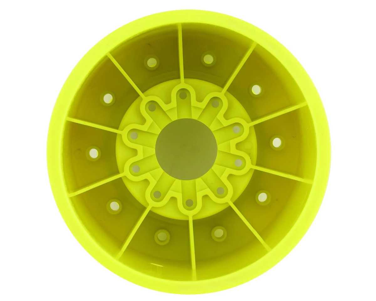The JConcepts Aggressor 2.6×3.8″ Monster Truck Wheel is looks similar to the Tribute wheel, but is beefed up with thicker wall sections throughout the wheel and a reinforced 17mm hex adaptor, as well as a ten-leg bolt pattern that locks and keys into the wheel.