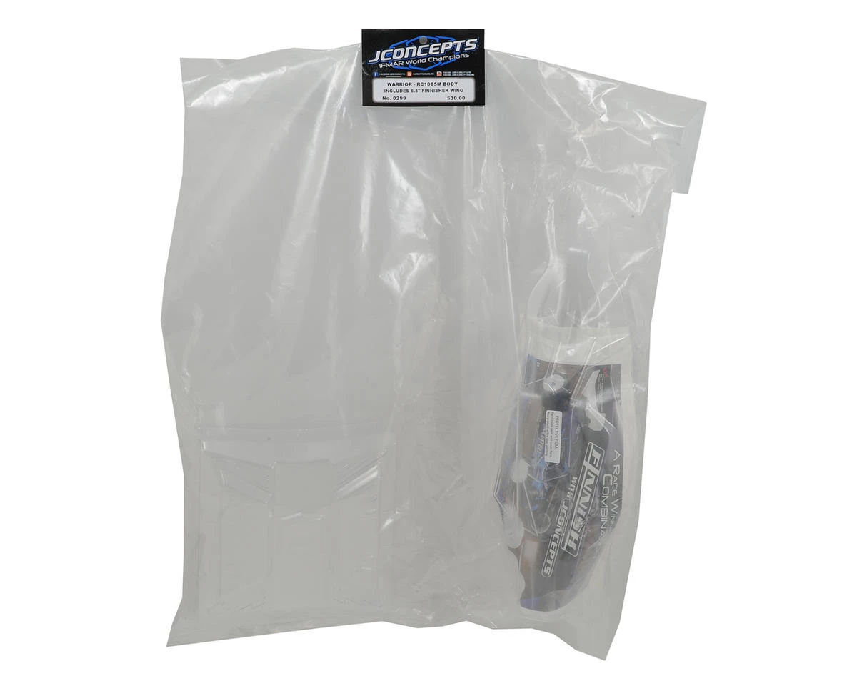 Fully committed, the Warrior body features cut-lines for either Team Associated 3 or 4 gear transmission layout. The body package contains two 6.5” Finnisher rear wings with cut lines and pre-dimpled locations for drop-fit mounting on the Team Associated B5M. Masks are included for all forward and side facing window panels and JConcepts decal sheet for authenticity and loyalty.