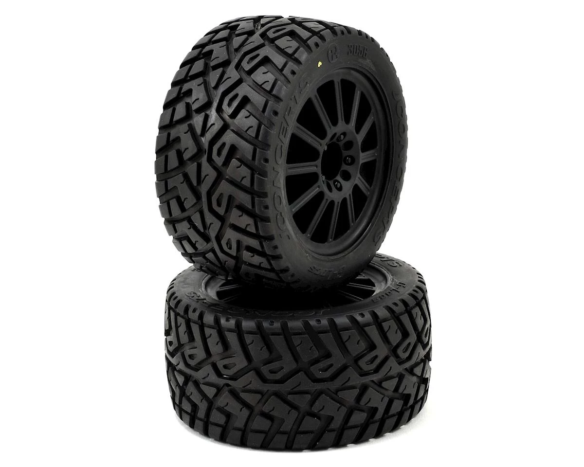 This is a pack of two JConcepts Pre-Mounted G-Locs 2.8″ Tires in yellow compound, pre-mounted on Rulux Electric Front Wheels. These pre-mounts can be used on the front and rear of the Traxxas Stampede 4×4, as well as the front of the electric 2WD Stampede, and 2WD Rustler trucks. Plus, they also fit on the Slash 4×4 when equipped with the JConcepts Scalpel body and conversion kit. The 2.8″ G-Locs provide elements that combine light-weight, performance and durability with the inclusion of Profiled closed cell inserts. The highly successful insert material made it’s fame on the 1/8th off-road racing circuit and now into the JConcepts 2.8″ line. Feel at ease while doing high-speed runs with the durability and performance of the closed cell material which provides durability and feel when others run short.