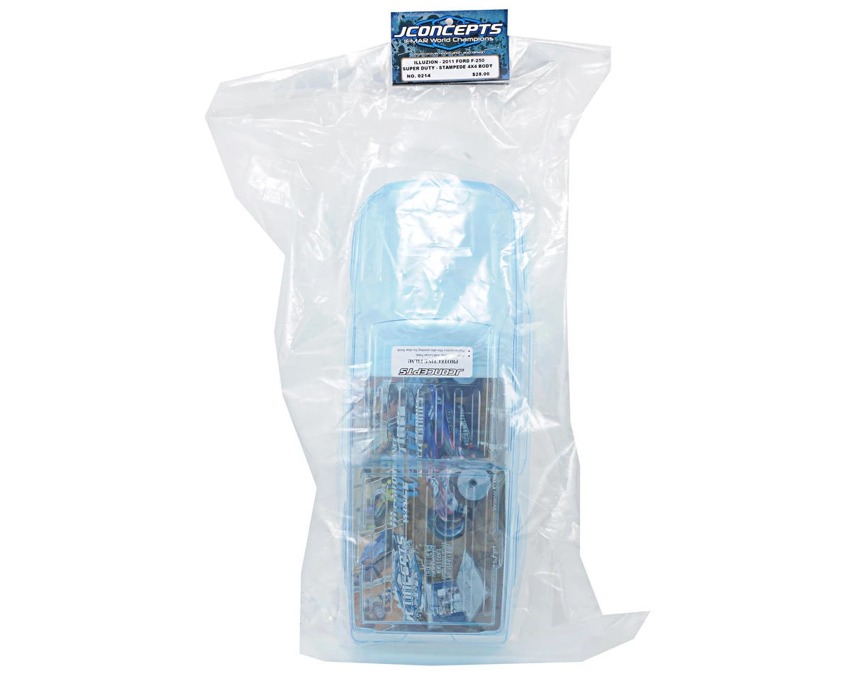 This is the JConcepts Illuzion “2011 F250 Super Duty” Body, and is intended for use with the Traxxas Stampede and Stampede 4×4. Stampede owners can breathe a sigh of relief, the big and tough, Ford F-250 Super Duty has arrived. Officially licensed by Ford, JConcepts introduces the 2011 Ford F-250 Super Duty body as a drop-on replacement body for the Stampede 2wd and 4×4 vehicles.