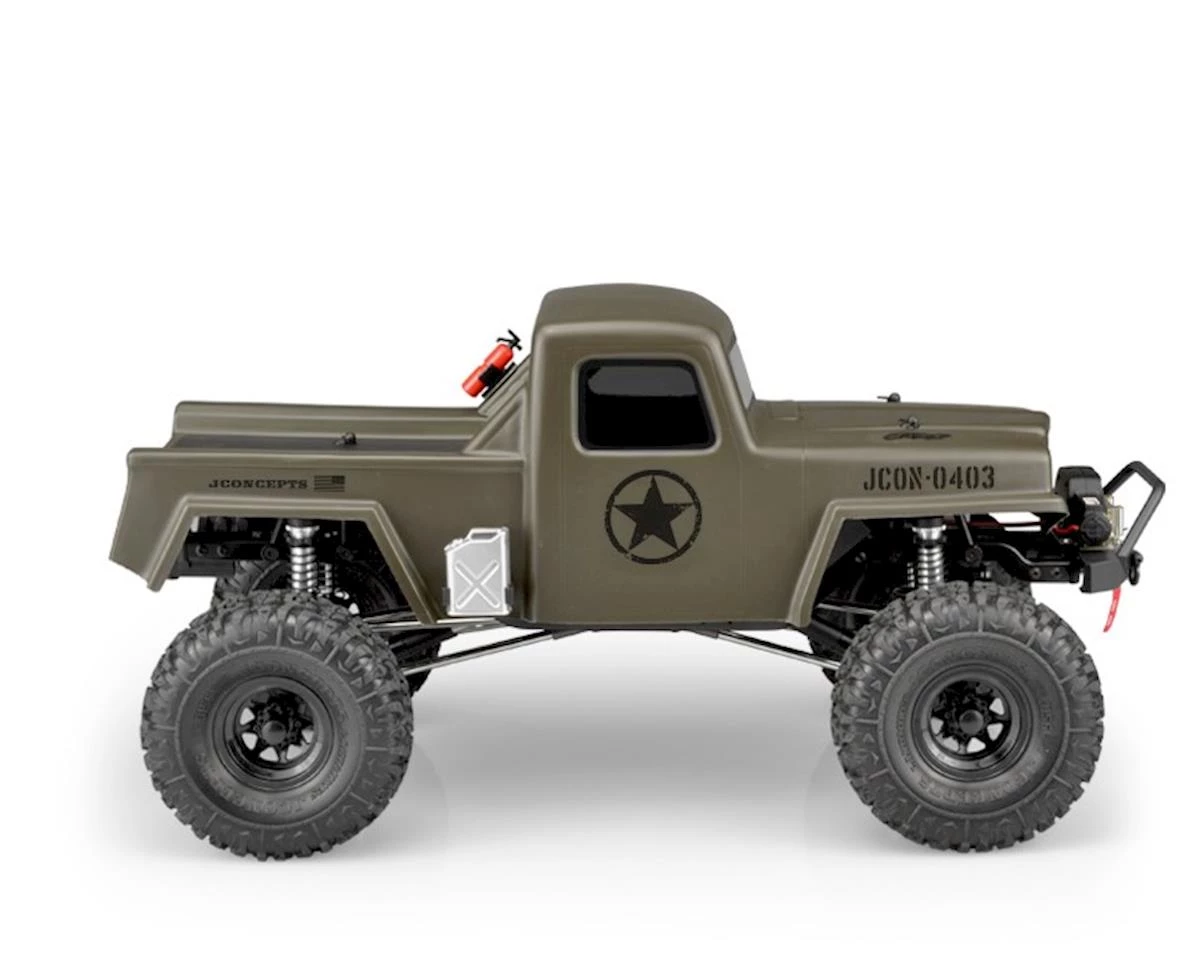 - The JCI Creep photo truck is an Element RC Enduro with removed floorboards. The JConcepts team added another battery tray (ASC42003) to the rear to mount electrical and the receiver box. It’s important that the Creep body is either mounted high enough to clear side-guards or floorboards, or its necessary to remove them all together to meet the narrow width of the shell. The truck is fitted with JConcepts JCO3156-02 Landmines tires in green compound and mounted on JCO3389B Colt bead-lock wheels. The front bumper used is the Axial (AXI80125) with RC4wd front winch.