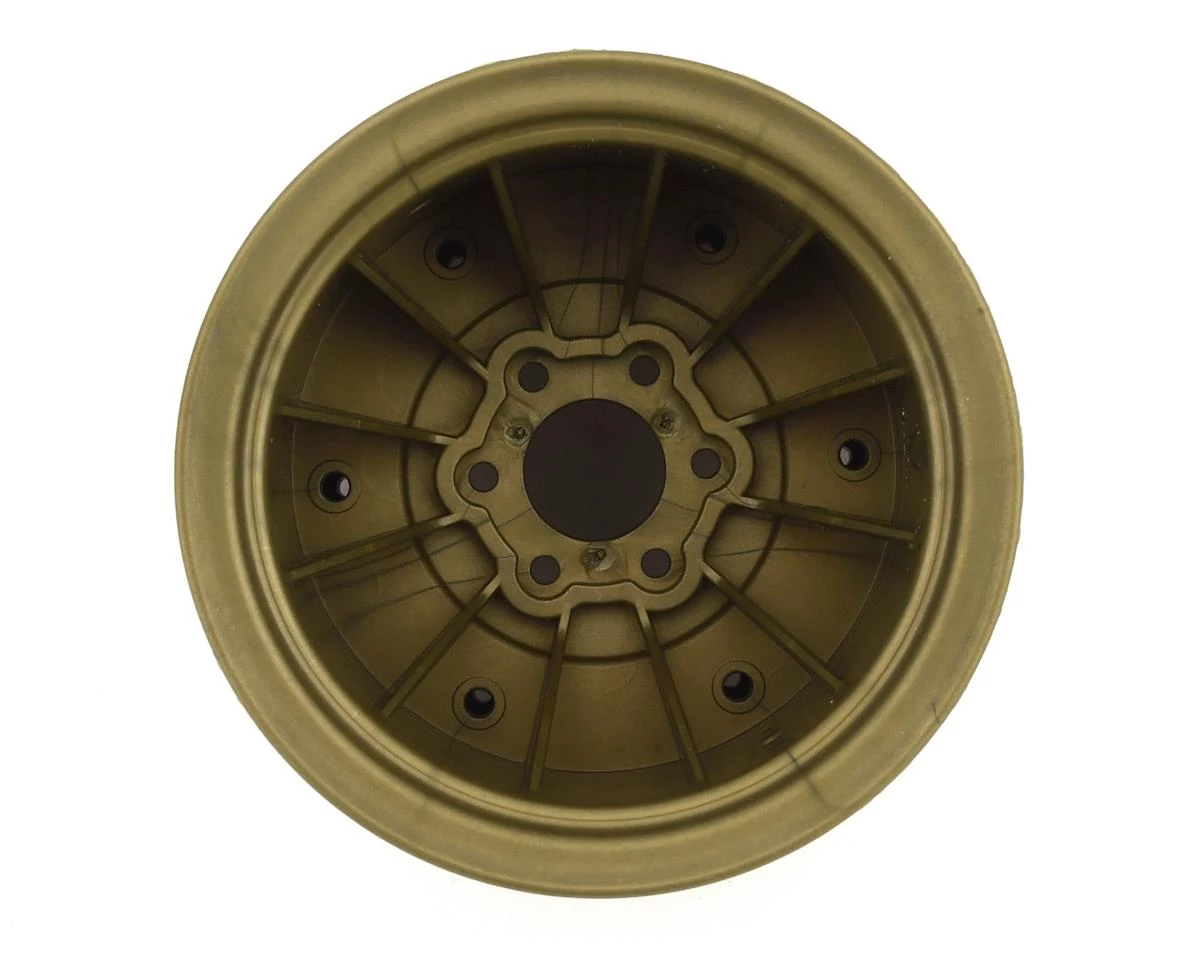 The 2.6” Krimson Dually is a first of its kind, a purpose built, 2-piece, 12mm hex wheel which fit dual Fling King tires to perfection. Like the originals, the wheel is 2-piece which accomplishes many things in the process. The use of an inner and outer wheel allows ease of build and gluing of the tires while aligning and perfecting the ultimate mud tire combination.