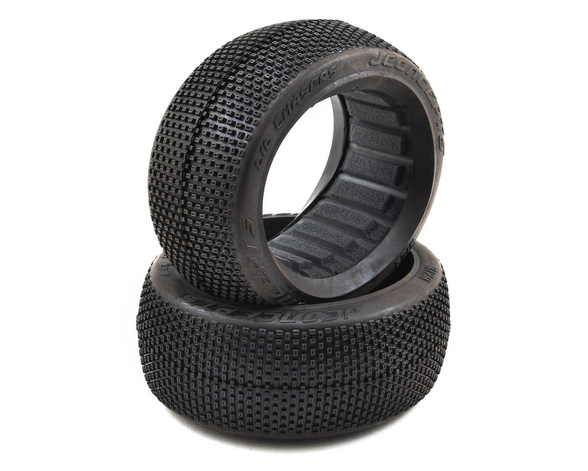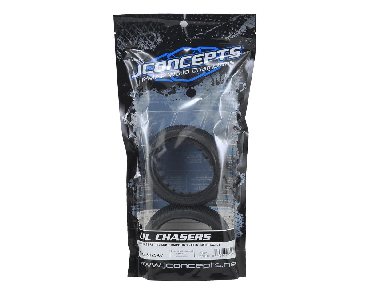 JConcepts LiL Chasers 1/8th Buggy Tires feature a tread pattern that has been scaled down from the original Chasers. Small, rectangular lugs which are angular in multiple directions give the tire the bite needed for outdoor racing. LiL Chasers have a lower, closer lug arrangement which gives incredible responsiveness and bite in medium, high and low grip conditions. The wet and dry condition tire has small recessed cuts in the top of the tread for extra edges and increased formability over terrain. The center overlapping bar treatment increases durability in the highest wear region of the tire.