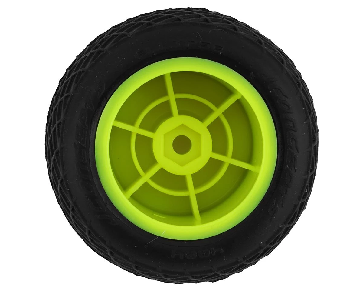 The JConcepts Mini-B/Mini-T 2.0 Ellipse Pre-Mounted Rear Tires were designed to compete on smooth high-grip indoor and outdoor surfaces. The center section of the tire is a “home plate” styled footprint to provide massive surface area for better contact and increased longevity. The web of extensions is unique and have a directional touch giving the racer the ultimate tune-ability. These Ellipse tires come pre-mounted to the JConcepts Mini-T 2.0 Mono Wheels. Package includes two optional pre-mounted tires intended for the front or rear of the Losi Mini-T 2.0 or the rear of the Mini-B.