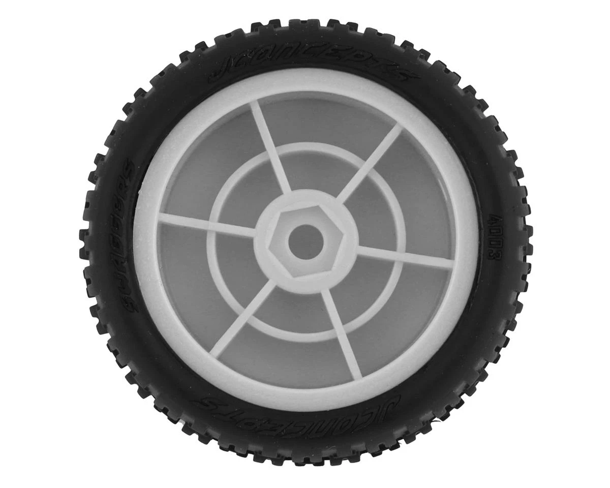The JConcepts Mini-B Swagger Pre-Mounted Front Tires are designed for high corner speed, consistency and straight-line tracking abilities. The Swagger has shown to produce ultra-fast lap times while also being easier to drive than other options on the market. These front tires are designed and pre-mounted on the JConcepts Mini-B Mono front wheels. Package includes two optional pre-mounted front tires intended for the Losi Mini-B.