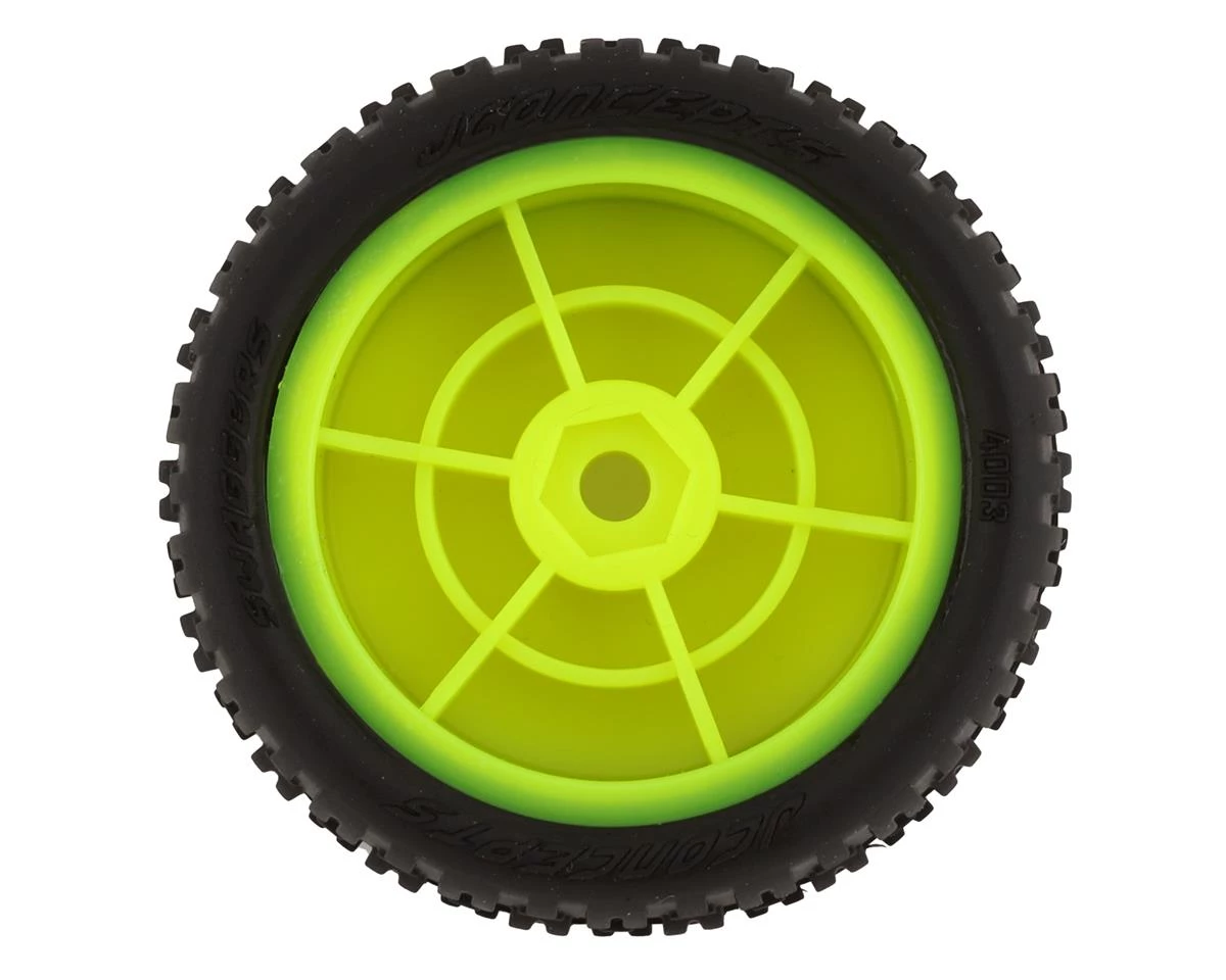 The JConcepts Mini-B Swagger Pre-Mounted Front Tires are designed for high corner speed, consistency and straight-line tracking abilities. The Swagger has shown to produce ultra-fast lap times while also being easier to drive than other options on the market. These front tires are designed and pre-mounted on the JConcepts Mini-B Mono front wheels. Package includes two optional pre-mounted front tires intended for the Losi Mini-B.