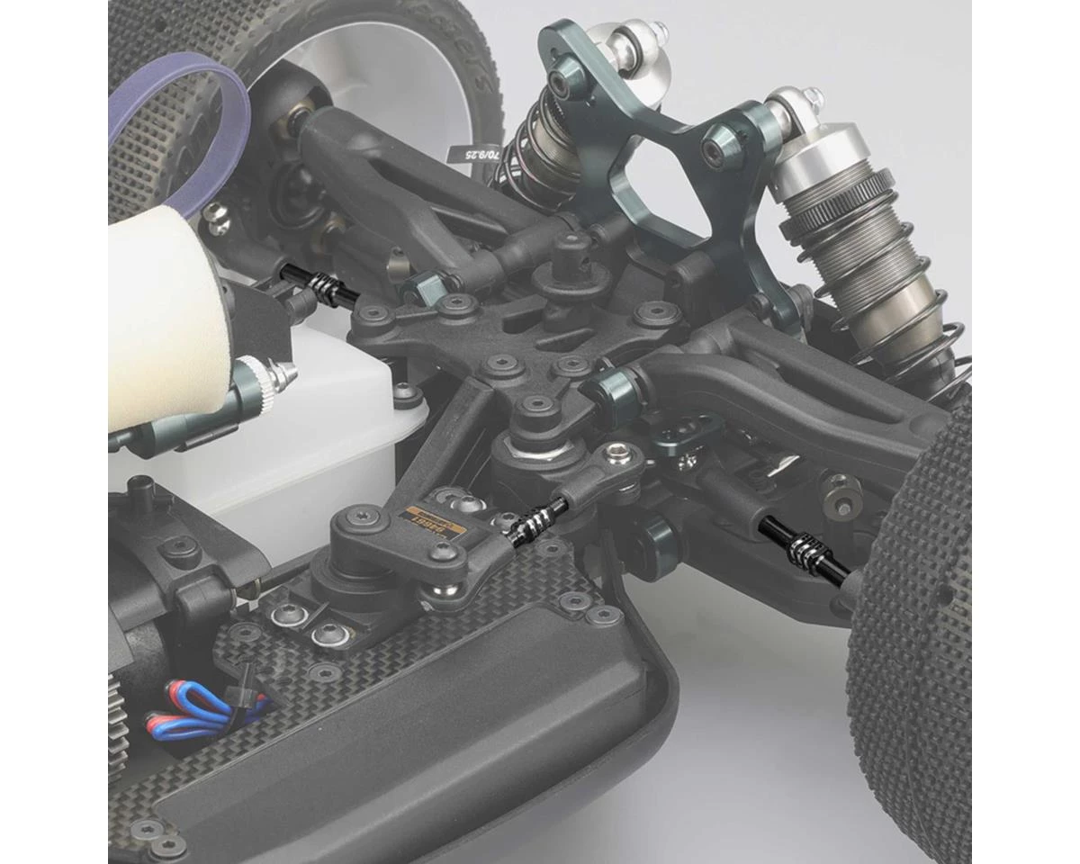 The JConcepts Mugen MBX-8 Fin Titanium Turnbuckle Set features a camber and steering link design centered on beefy 5mm square titanium which gradually tapers down into a thread base which accepts the stock rod ends. The focus of the styling surrounds the lengthened adjustment area and the “finned” cuts that rotate around the center. This set also includes the 3mm Fin Titanium steering drag link for a complete look and finish to outfit the kit. The Fin turnbuckles are lightweight, and the original design brings out the glamour and quality that makes titanium one of the most sought-after exotic materials in the world. The JConcepts turnbuckles are produced with left- and right-hand threads with the left being conveniently marked for easy orientation.