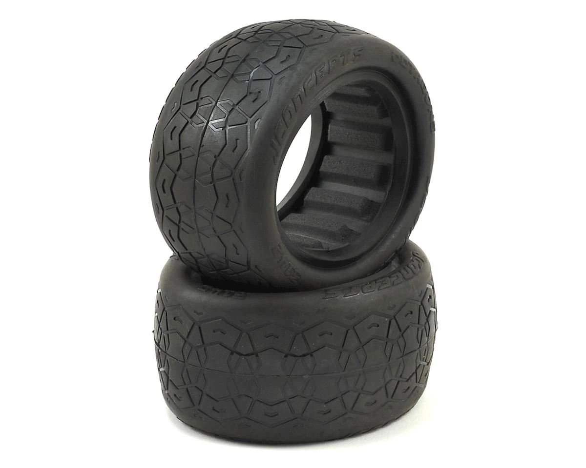 The carcass is totally unique, slightly more round than JConcepts slick tires of the past and incorporates heavy X-pattern style inner ribbing for increased support. The continuous thickness carcass is light-weight and utilizes the industry standard 2.2” mounting bead. Like the name suggests, the embossed tread which is Octagon shaped is repeated and overlapped to form a subculture of grippy surface edges for dry or abrasive surfaces.