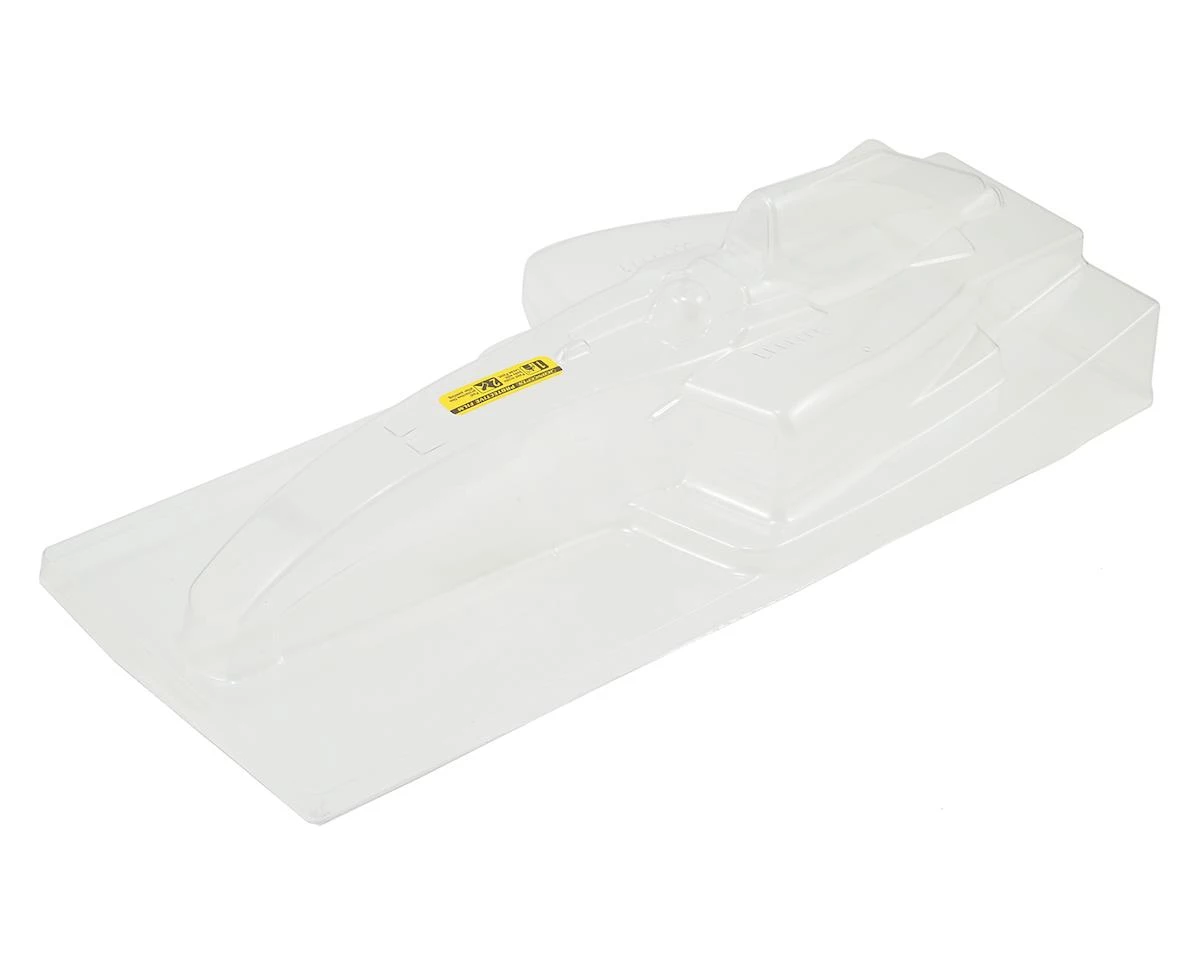 Behind the drivers helmet, stands the upper cooling engine scoop which transforms into a large stabilizing fin for added tracking ability. The side-pods feature under-cutting and recessed areas for vent cut-outs or adding included decals. The entire body packs one of the most sleek looks in class while bolstering a super low-profile design making it highly attractive as a racer and most comparable to the 1:1 counterparts. A complete J21 “Javelin” decal sheet is included for maximum exposure and detailing for the ultimate in show and go.