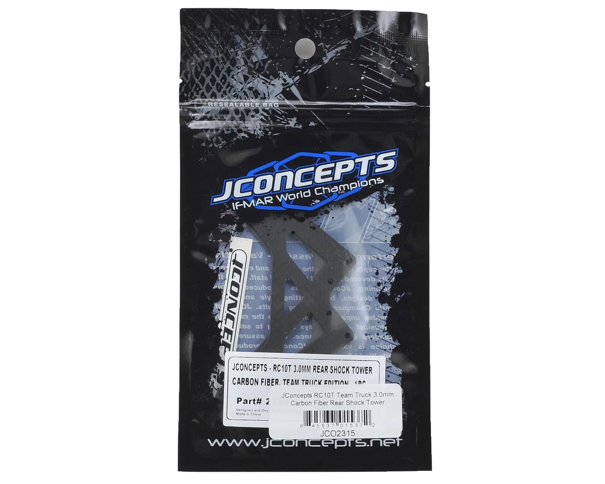 The JConcepts RC10T Team Truck 3.0mm Carbon Fiber Rear Shock Tower is a direct replacement upgrade for the standard fiberglass tower. The rear shock tower includes the Team Truck geometry for the best handling characteristics from that era. The tower includes detailed reinforced areas, adding strength in key areas as well as the improvement in material creates a more rigid feel, increasing the response in the front-end. Replace the fiberglass and go with authentic 3.0mm Carbon Fiber by JConcepts.