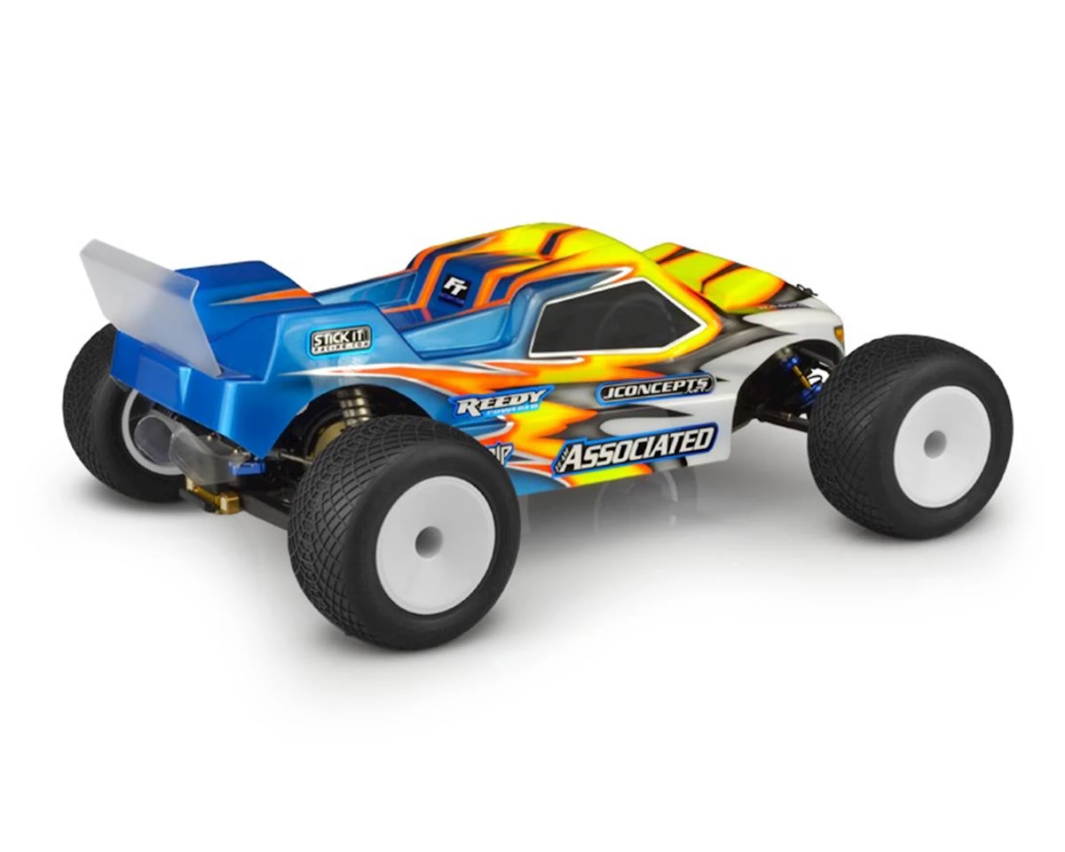 Like the ROAR National Champion Hi-Flow SCT body, the Finnisher body has built-in air escape passages which allow the customer to fine-tune the body for maximum outdoor performance. The latest stadium trucks can utilize shocks placed on the front or rear of the rear suspension, the JConcepts body accommodates both configurations for the utmost versatility. The updated body includes the high-performance gurney spoiler (JCO0147) which increases rear grip and balances the handling characteristics of the aggressively styled body. 1/10th stadium truck racing is back, JConcepts style.