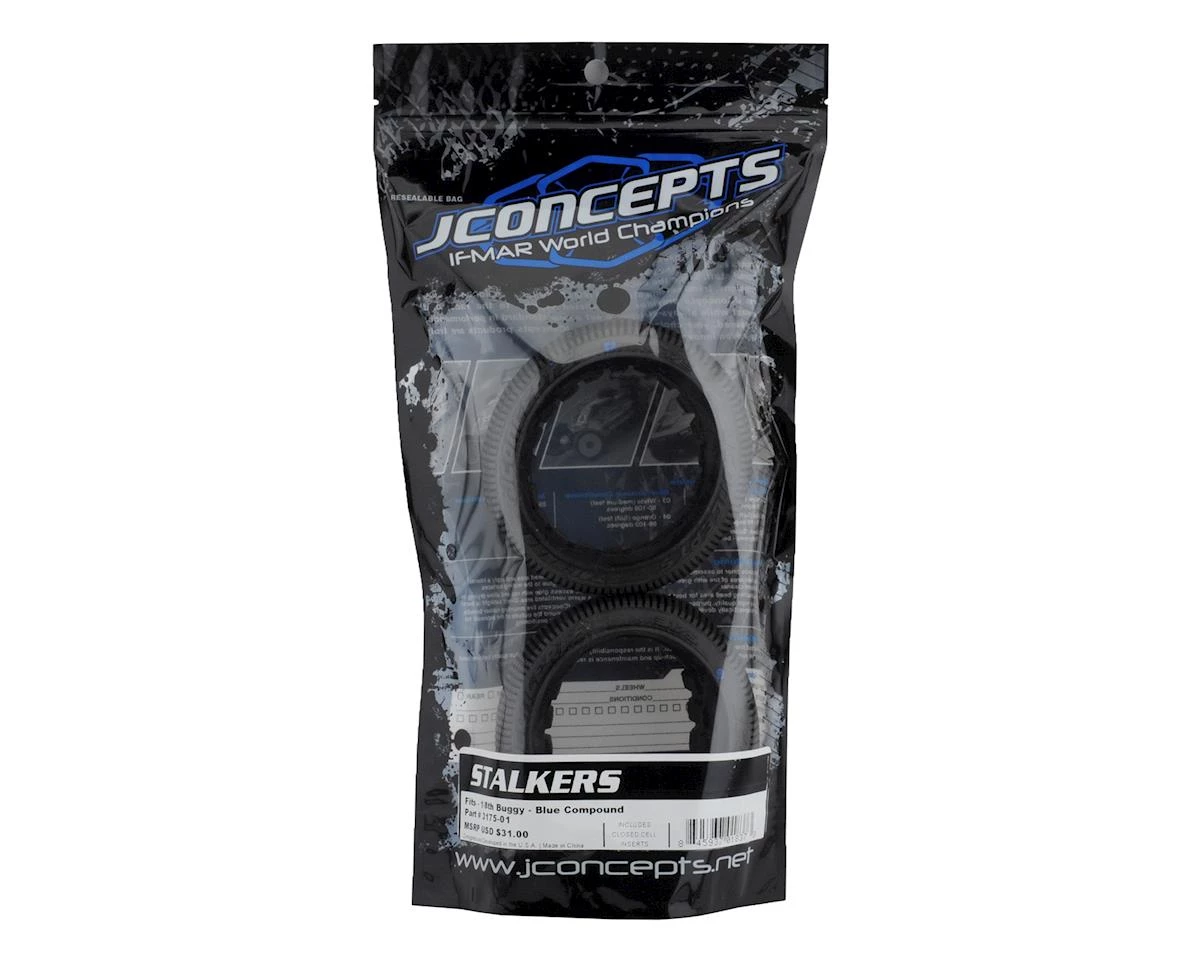 This is a pack of two JConcepts Stalkers 1/8 Buggy Tires, with included foams. The Stalkers tire by JConcepts was developed for surfaces which mature over time, get rough, dry and with extreme scaling to the surface. The Reflex tire, designed by Jason Ruona, in early 2014 has been a success and the Stalker is a chip off the old block.