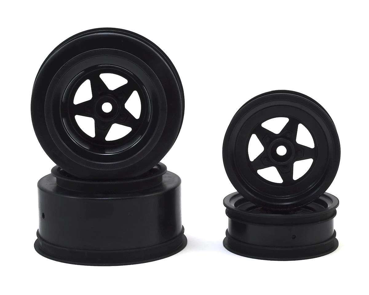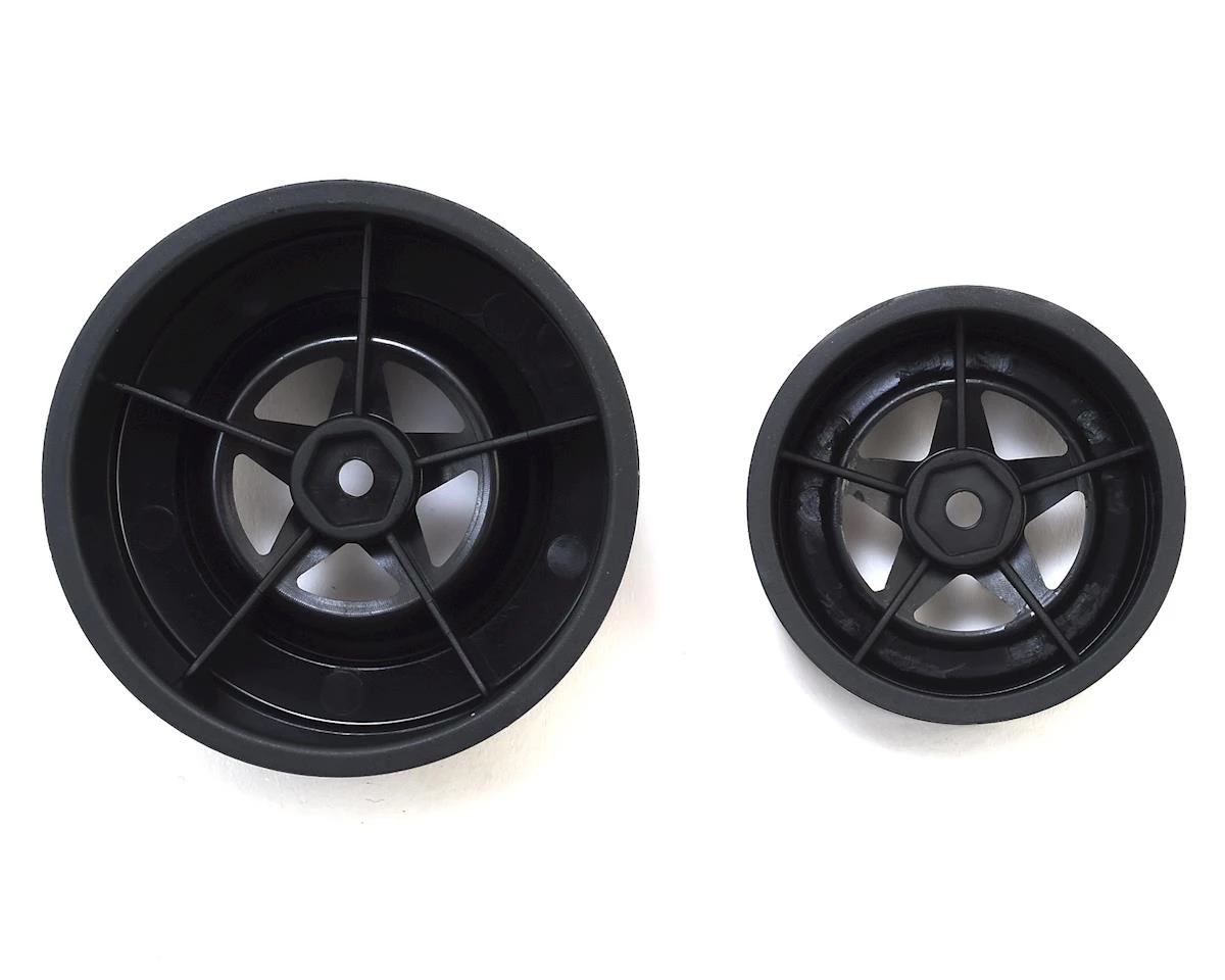 The 12mm hex based, StarTec wheels are packaged in a set, two fronts and two rears are included in each package. The matte black and stealth look give the wheels serious street appearance and look ultra low under any race car.