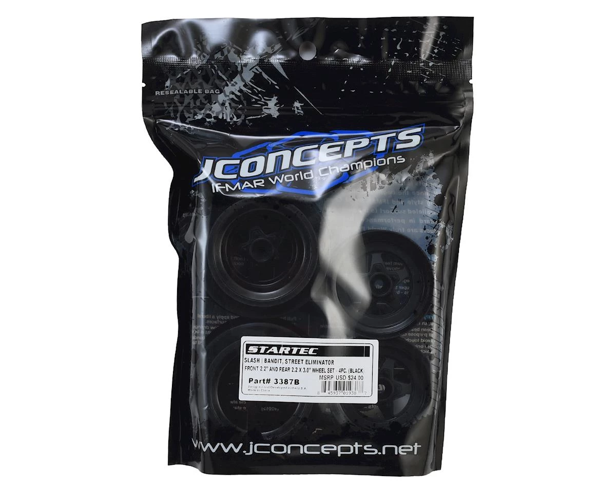 The StarTec wheels match perfectly with JConcepts Hotties tires (JCO3193 front) and (JCO3194 rear) for the Street Eliminator look.