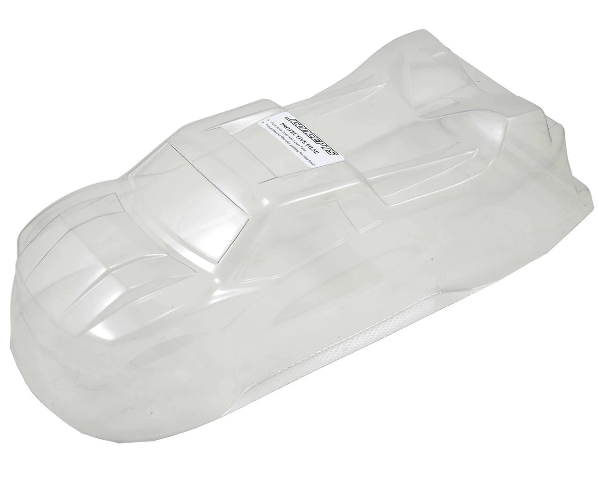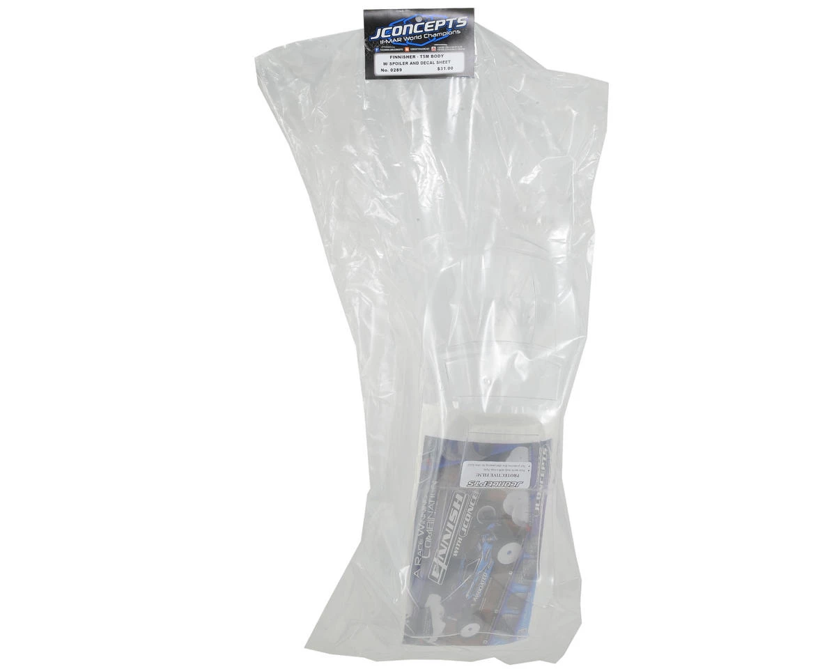 This is the JConcepts T5M “Finnisher” Clear Body, with an included clear wing. JConcepts is here to support the emergence of stadium truck with a Finnisher body which drop fits on to the Team Associated T5M racing truck. The JCO0289 body incorporates pre-dimpled locations for the hottest MM truck on the circuit. The slight cab forward, raked windshield and aggressive stance highlight a performance oriented core. A revised front hood scoop allows plenty of clearance for the unique T5M geometry while smoothing out the front down force area. Front chin spoiler, headlight and grill protect the front-end from unwanted up-drafts during flight while the supplied decals stand-out like an 18 wheeler.