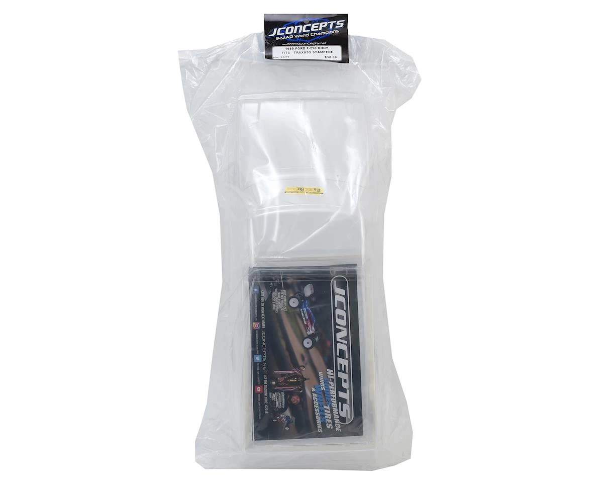 The JConcepts Traxxas Stampede 1989 Ford F-250 Body with Racerback features first class styling and an exterior accentuated with smooth molded front and rear bumpers. The must-have body of the 80’s was featured on several of the most popular full-size Monster trucks during this generation and always proved to be popular among the Ford enthusiasts and always wreaked havoc on the competition.