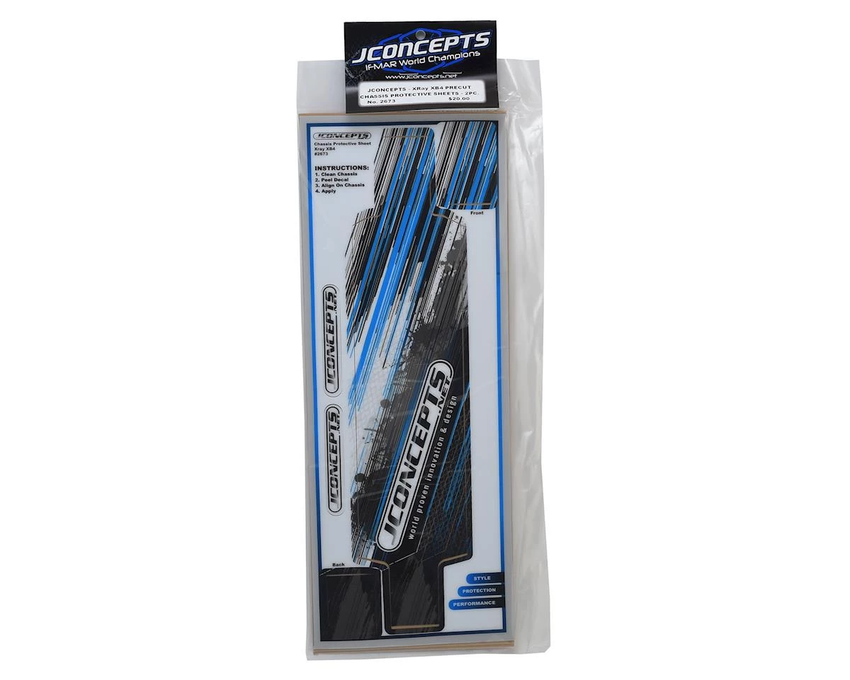 The JConcepts XRAY XB4 Precut Chassis Protective Sheet helps to protect your chassis and provide a smooth or slick surface to decrease friction between chassis and dirt surfaces. With 2 pieces included per package, the durable and resilient material fits each chassis layout like a glove and adds protection and style in one easy package.